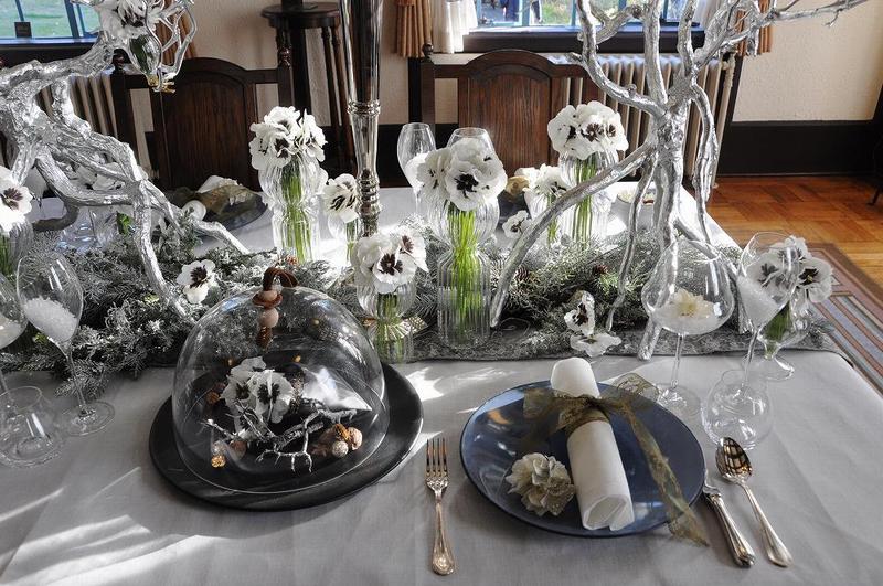 装飾のエルベ・シャトランのコンセプトは、「花と花器と水のハーモニー」。