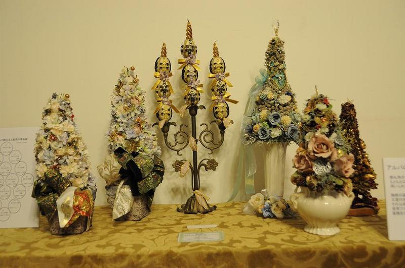 とはいっても、メインテーブルは他の会場の賑やかな食卓と異なり、寂しいものがある。 しかし、マリー・アントワネット王妃がこよなく愛した幻の工房「レーヌ窯」コレクションが数多く展示されており、会場は豪華さと、落ちつきも感じられます。 【装飾】 石井万里子(マインシュティール 主宰)