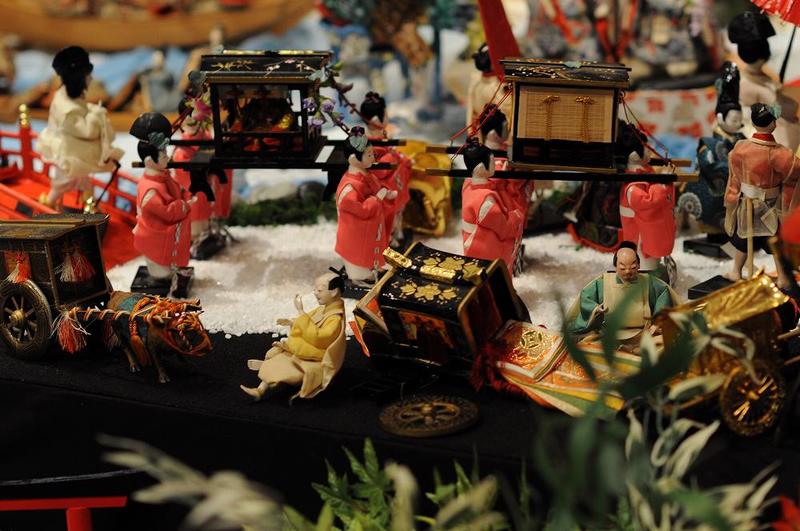 大半の雛人形は、舞台上段を占める「宮中の賑わいさ」だろう、王朝絵巻の一場面を見ているようだった。