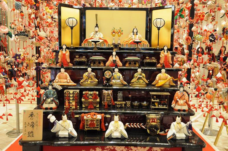 京王プラザホテルは、3階のメインロビーで、約6,800個の本絹古布のつるし飾りと、京都の上賀茂神社から木目込み人形の唯一の正統伝承者として認定を受けている真多呂人形の段飾りが設えられている。