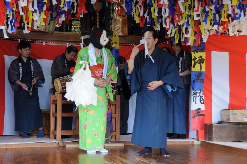 まず最初に、おかめさんが一人で出てきて舞い始めた。