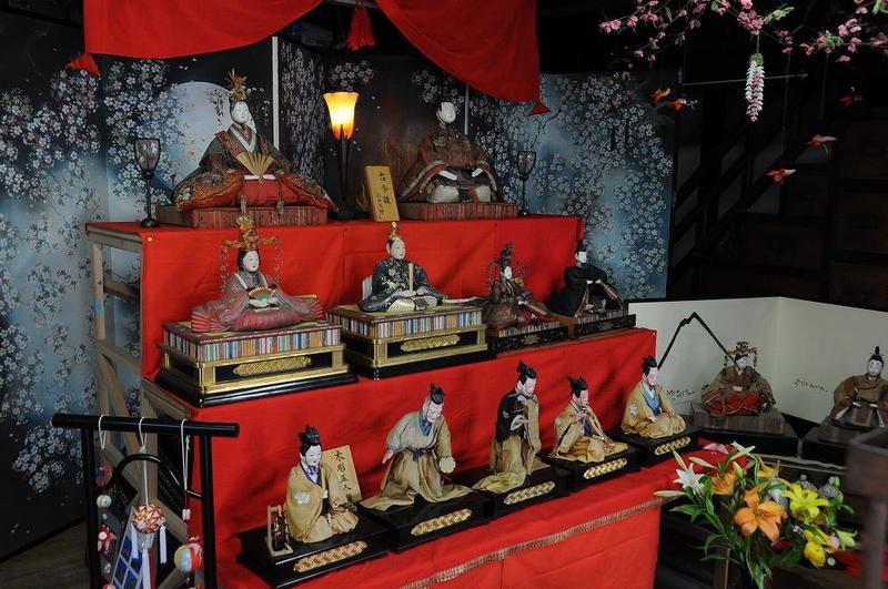 8番は「まつだ松林堂」そして7番は「小林荒物店」だった。パンフレットでは、「古びな・特別公開」で23会場、「おひなさま・ギャラリー」が22会場の計45会場の中で、今年のパンフレットの表紙となったのが7番の小林荒物店の雛人形である。