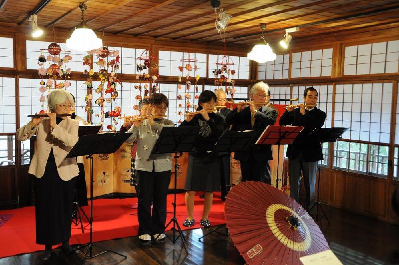 13時から14時まで、「南昌荘」のAの間(お休み処)で、山口流篠笛の演奏会が行なわれた。