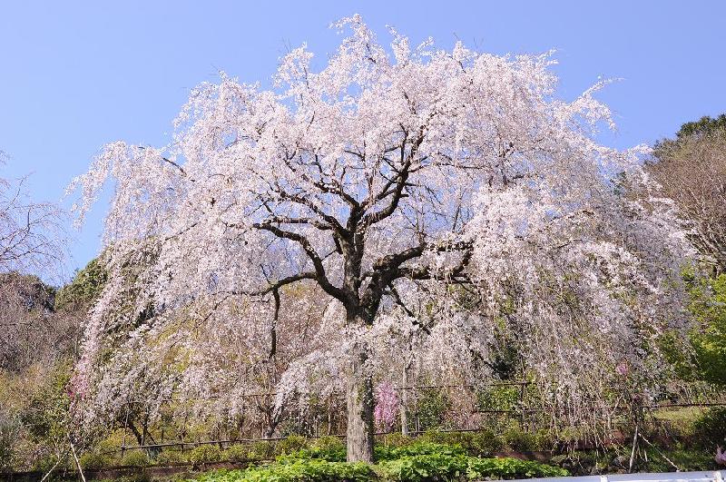 紹太寺のしだれ桜を見下ろすシダレザクラ