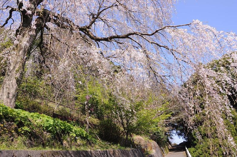 ここからは「長興山紹太寺のしだれ桜」は、坂道を10メートルほど上がるので、真横から、やや見下ろす位置に当たる。
