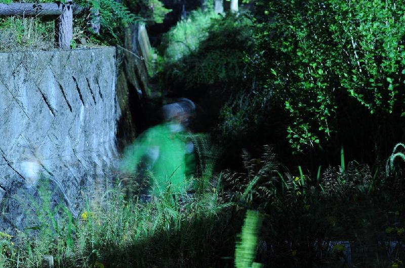 ヒメボタルの撮影時はヘッドランプも着用する。