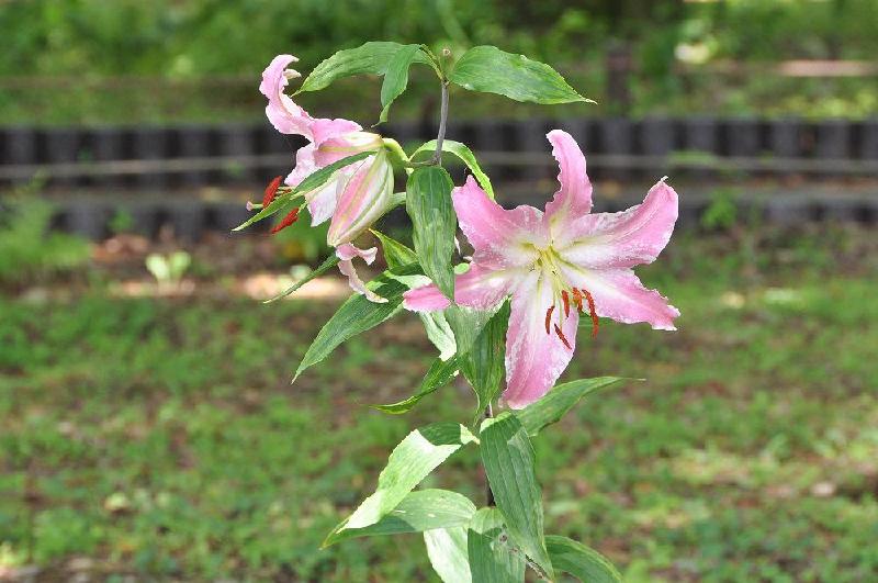 もう1ヶ所は西立川口サイクルセンター前を通り、眺めのテラスへ向かう途中に、1株毎に植樹された百合があったが、今の時期に花が見れる場所は、一本だけ、淡いピンクの花がきれいだった。 |