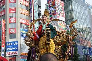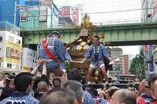 | 「天下祭」として知られる神田祭は、元和年間(三代将軍家光の時代)までは船渡御であったと言われている。 延宝年間(五代将軍綱吉の時代)までは毎年斎行されていたが、その後、山王祭(千代田区・日枝神社)と隔年で斎行することになり、以後今日までに2年に一度斎行されることが恒例となった。 今回も、千代田区内の全108町会の大小合わせて200基もの神輿が、各町内を渡御して、神田明神に宮入をした。 |