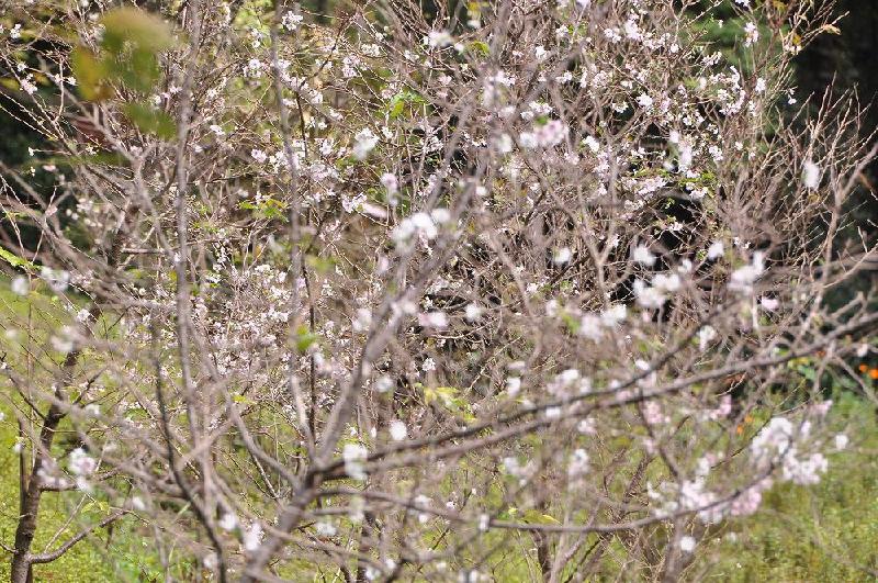 このエリアだけでも通路に沿って植えられている十月桜(ジュウガツザクラ)は、10本以上にもなり、ちょっとした花見会場である。