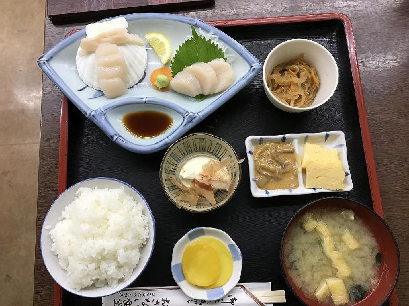 注文したのは「ほたて刺身定食」、お腹は空いていたので、ご飯をお代わりした。10月2日の朝食はホテルのバイキング、衛生面はやり過ぎの感じがある。