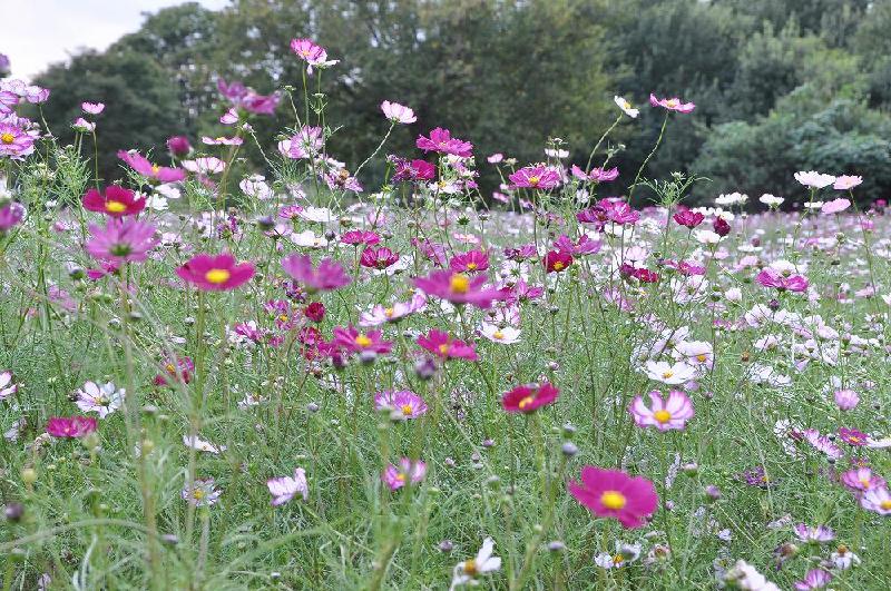 幸いにも、花の丘の北側に有る「北花畑のコスモス」は、種まきのシーズンが異なっていたため、今が満開で見頃となっていた。