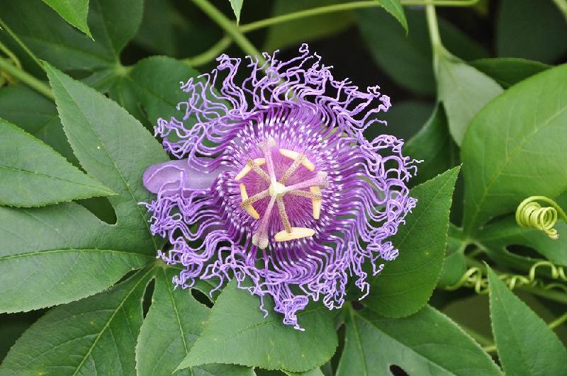 花木園売店のガーデンでは、時計草が一輪咲いていた。 ちょっと珍しいので、正面と側面から写真を撮っています。