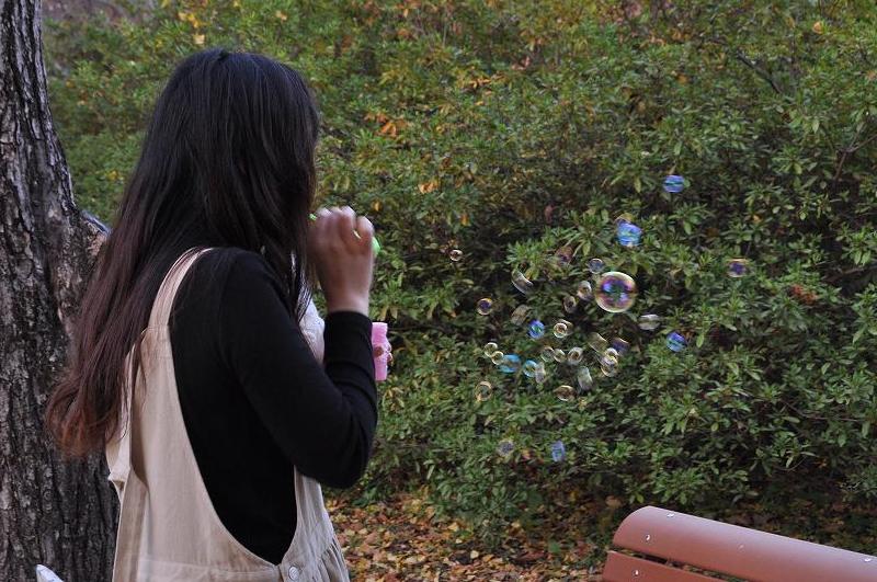 楽しそうにシャボン玉で、スマホ写真を撮りあっている二人を見つけ、カメラを向けた。 流暢な日本語を話す中国人だ。