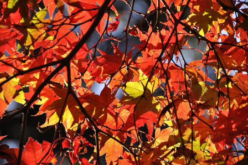 秋景色としては、黄いろの葉が鮮やかな木、十月桜、オオモミジ、白のさざんかなどが芝生の広場で彩りを添えていた。