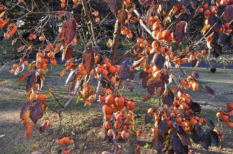 「皇居東御苑果樹古品種園」にはミカンや柿が美味しそうに実っていた。皇居休憩所には「締め切り時間」ギリギリに着き、最終列に並んだ。