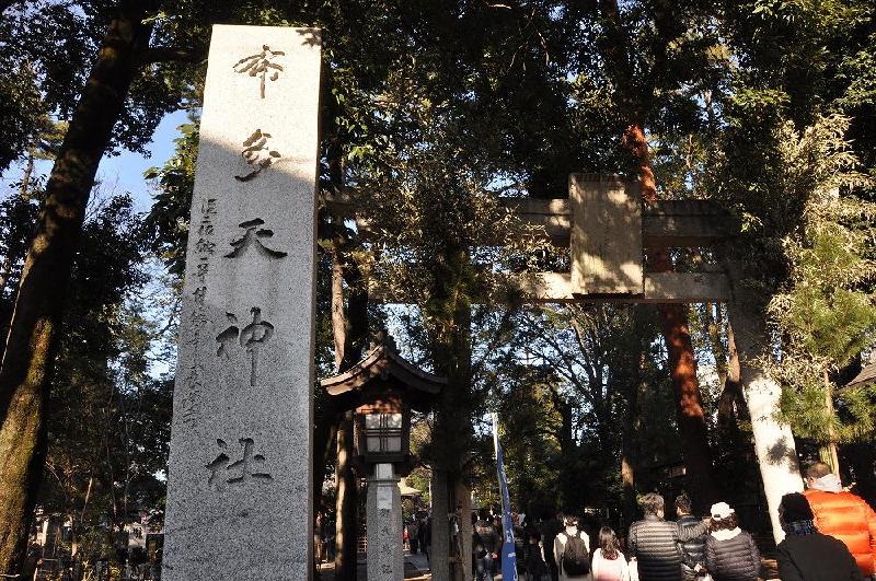元の社殿は、現在の布田5丁目にあったが、文明年間に多摩川が大氾濫を起こしたのをきっかけとして、文明9年(1477)に現在地に遷座し、菅原道真公を合祀した。