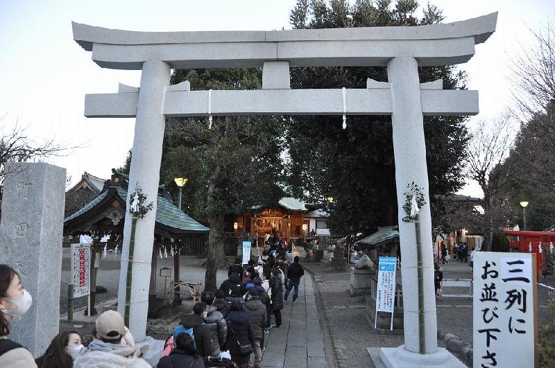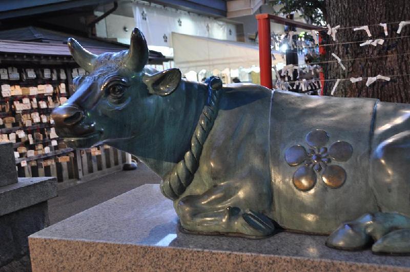 昭和42年(1967)新社殿を造営し現在に至る。参道には、石像と青銅製の2頭の牛が奉納されていた。 |