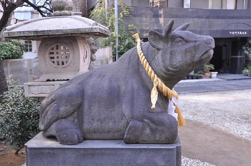 戦後仮社殿にて祭祀を執り行っていたが、昭和44年(1969)に本殿が再建された。境内には、5体の石造りの牛像がいた。