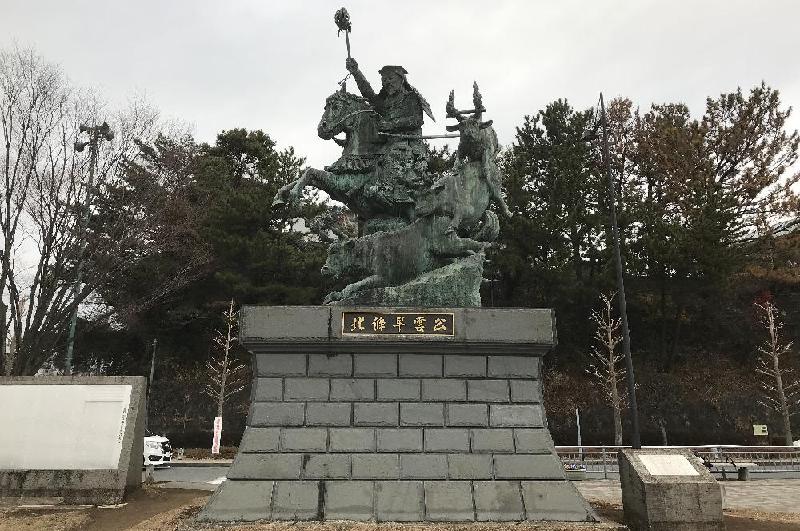 この銅像があるのは、小田原駅西口のロータリー。 北条早雲の「火牛の計」と言い、高さ5.7メートル、重さ7000キログラムの日本最大級の銅像だ。