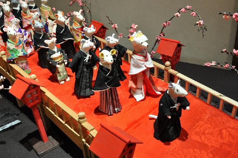 そのため、雛人形の借り出しや運搬、飾り付けの人員と・・・ものと係わる人たちの人海戦術である。1月1日から始まっている「百段階段の百の縁起もの」に、2月2日〜3月14日の期間中に、稲敷市の愛好家団体と市商工会の有志に出展を打診したとか。同市の愛好者らによる「吊し雛(びな)の会」(筧英子(84)代表)が端切れを使って作ったつるしびなと、毎年春の「江戸崎の雛まつり」用に制作した「ねずみの嫁入り行列」の人形が出品される。