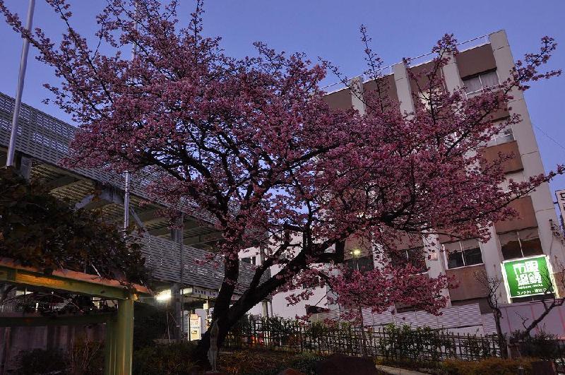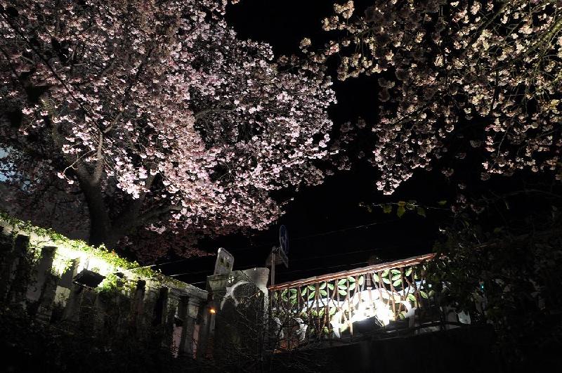 今回も、「アカオハーブ&ローズガーデン」の帰り道に、時間調整をして「あたみ桜のライトアップ」の撮影に臨んだのである。写真の撮り始めは「糸川遊歩道」の上流、バス停「本町商店街」からだったが、あまりにもビル街の真ん中で絵にならないため、日の入り後の「ブルーモーメント」を撮影するため、「熱海御用邸あと」に移動した。
