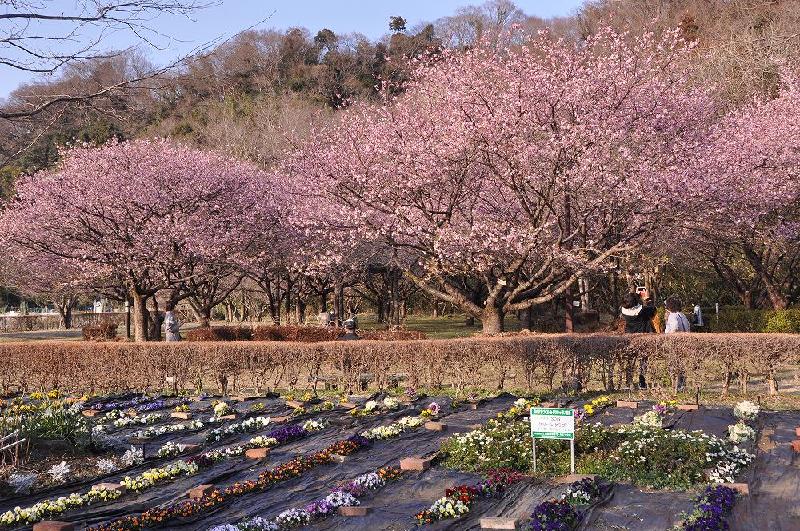そして「さくらの広場」には、約30本の河津桜があり見頃であった。 メジロやヒヨドリなどの野鳥も集まり、訪れる人を楽しませている。