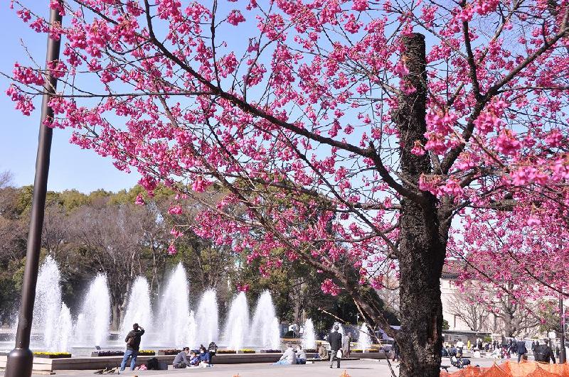 「10本並んだ上野公園のカンヒザクラ」