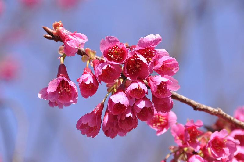 「寒緋桜」は、10本並んで植樹されており、いっせいに花開くと、見ごたえがあった。