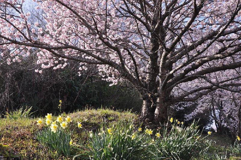 約120本の春めき桜が、怒田丘陵の斜面をピンクに染める見頃を迎える景色は、圧巻であるが、今年は「昨年の開花状況」から判断して、3月8日頃と判断したが、ここ数日は天候が悪く、3月10日は晴れたと思ったら、北風が強く吹き、桜の枝がゆれると判断して、風のおさまった本日に撮影に出向く結果となった。見頃から2〜3日過ぎたら、「春めき桜」はピンク色から白色なり、遠めに見たら色あせた感じになった。
