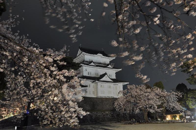 小田原城のライトアップと夜桜
