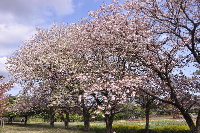 今年のチューリップの開花は早く、すでに落下していると公式ページで報じているが、桜は満開のようだ。