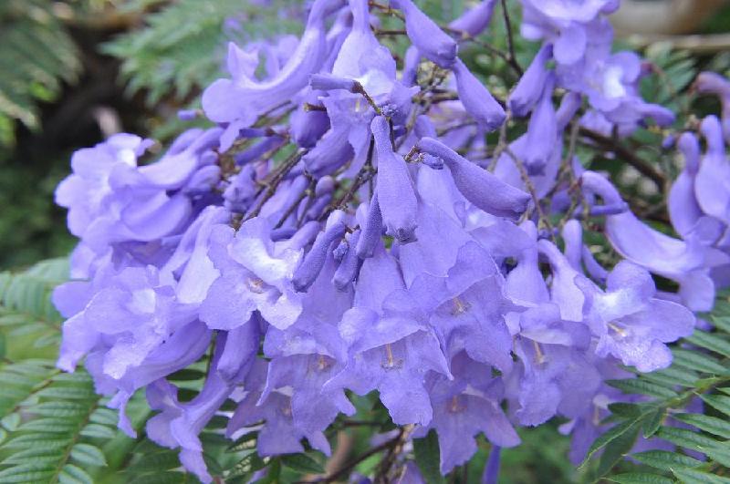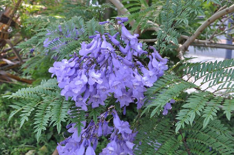平成12年に親水公園前の国道沿いに23本植樹され親水公園(観光協会前の約400m)、そして更に、お宮緑地の東西の「ジャカランダのプロムナード」に延長430m、幅12〜20mの細長い緑地ができ、134本(2020年6月・観光協会情報)のジャカランダの花が咲いていた。