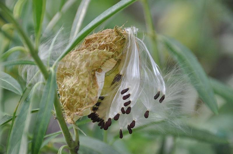 「フウセントウワタ」と言う不思議な植物、外皮が破けると中から綿毛を付けた種が飛び出してきた。 |
