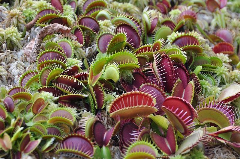 今回の展示では、世界各地に生える食虫植物を、自生地の環境を再現した会場作りに徹していた。