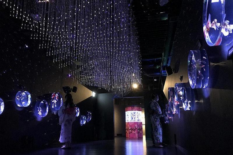 日本橋のアートアクアリウム美術館は、2020年に東京でオリンピック・パラリンピックが開催されるにあたって、国内外から東京を訪れる人たちに向けて、日本が誇る伝統芸能や文化を手軽に知ってもらうための場を目指して作られた。