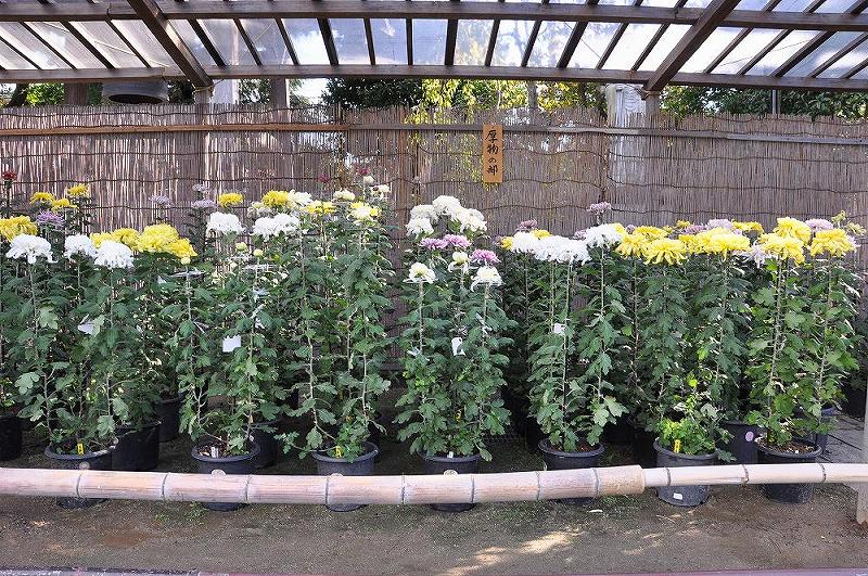 「第54回影向菊花大会」・・令和3年10月18日〜11月23日まで、タイトルは造景大花壇「江戸川に咲く美しい輝」 盆養、懸崖、大作り、小作りなど、1000鉢を並べていた。