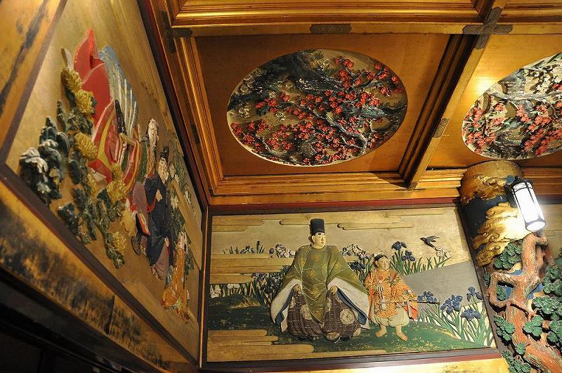百段階段には、昭和初期を代表する芸術家たちにより、50種類を超える草花が描かれ、これからの季節の愉しみのひとつ、菊やリンドウ、紅葉狩りをはじめ、春の桜、夏の朝顔、寒椿など、移り変わる季節を旅するかのような気分に浸れる。