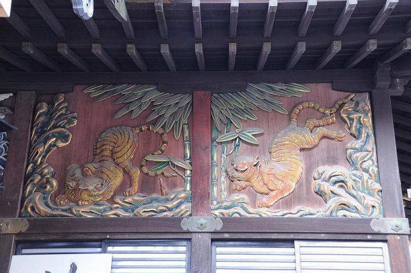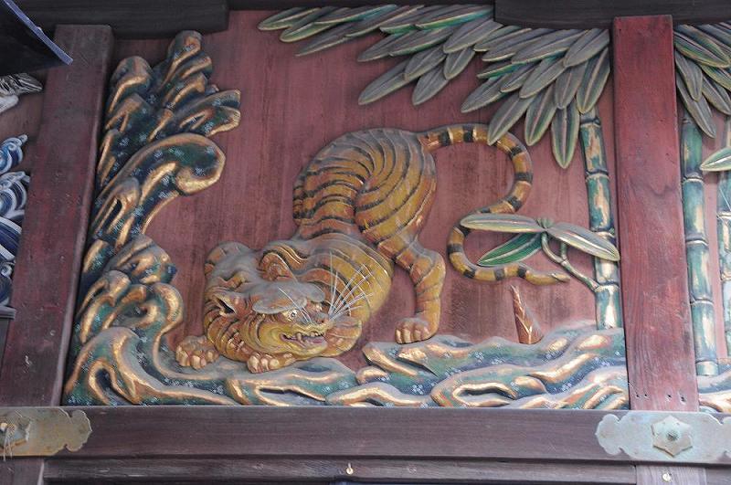 本殿正面に描かれている4枚の「虎」は左甚五郎の作品で、天下一品の作である。 |