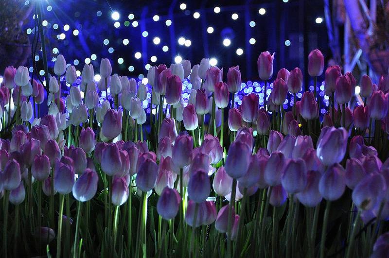 しかし、「湘南の宝石」のイルミネーションに重きを注いだようで、夜のチューリップは、歩行に支障を起こさない程度に照明を落としていた。 |