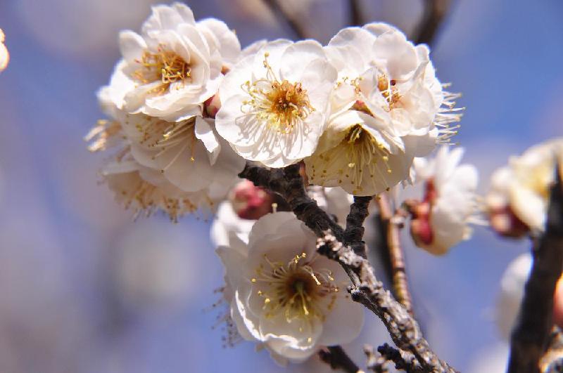 同様に、こもれびの池周辺でも、紅梅(八重寒梅)が花開いたと公式ホームページに書かれていた。