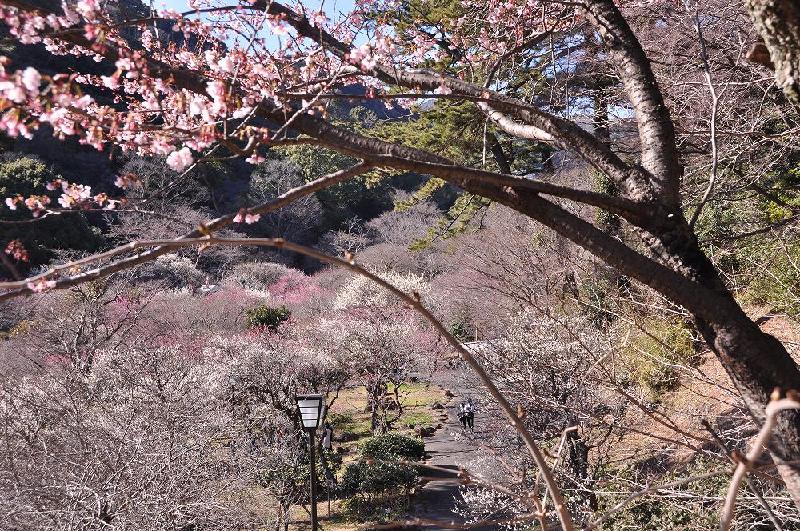 明治19年(1886)に開園した熱海梅園は、樹齢百年を越える梅の古木を含め、60品種:469本の梅が咲き誇っている。