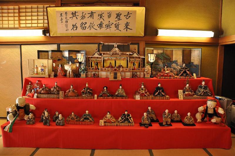 江戸時代から昭和初期までの歴史的なお雛さまは祖父・小林栄三(元厚生大臣)の残した家宝に、その後、収集家の前・小林オーナーが買い増しした骨董品的価値のお雛さまが飾られている。 |