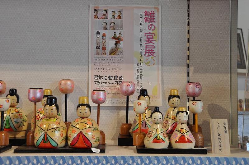 現在は「弥治郎こけし村」として、立派な展示場を設け、鑑賞や販売や体験コーナーが出来るほか、外には5つの工房がありました。 |