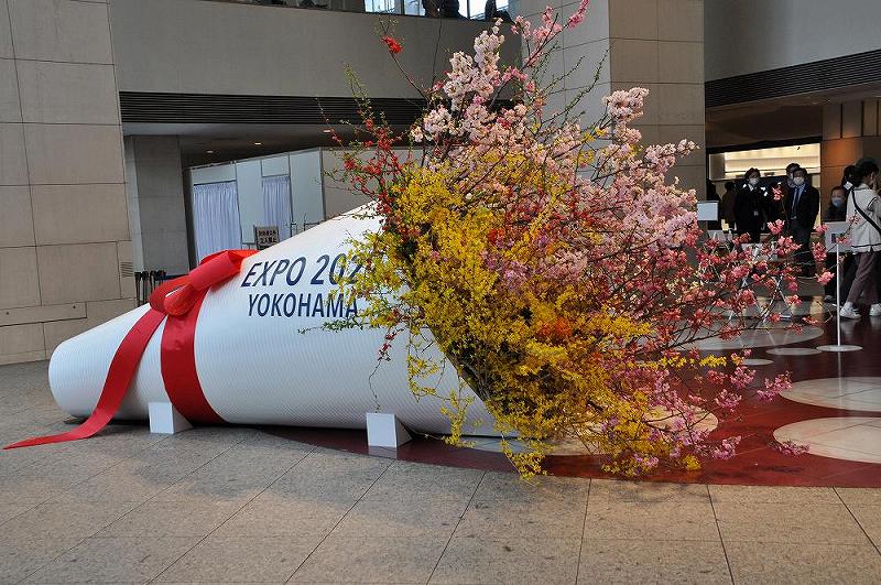 2027年に横浜市で開かれる「国際園芸博覧会」の開幕5年前イベントとして、花束をイメージした巨大なオブジェが3月24日から3日間にわたり、クイーンズスクエア横浜に設置された。・・・(テレビニュースで知った。)翌日の3月25日に撮影に出向く。