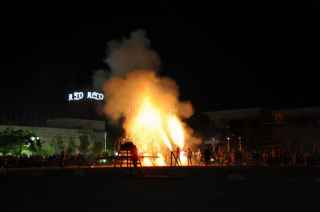 20メートルの距離なので、降り注ぐ花火の灰が目に入り、痛かった。 |
