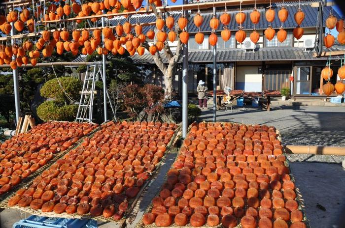 庭先の柿の木と、すだれ状の干し柿も絵になりました。