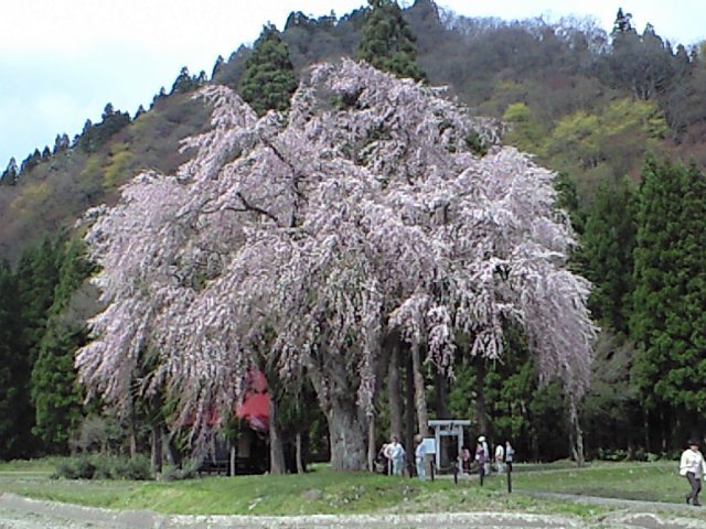 畑の真ん中に 白山神社の祠の側でひときわ 大きな枝が風に揺られてました 良い桜ですぅ〜 。