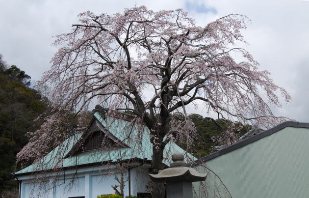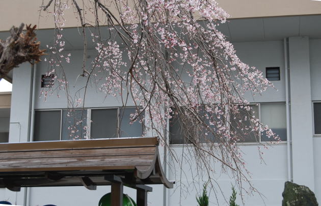 阿波踊り会館、東の小道を進むと、しだれ櫻の大木が見えます。 「永平寺」から小分けして頂いた何十年も立つ「しだれ櫻」だと聞きました。