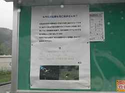 | 2.相模原市藤野町日野・・・樺央電子・藤野工場近くの河川にホタルが火柱の様に出てくるとの口コミで下見の来たのだが、それらしき場所で3頭のホタルを観測した。 立て看板の掲示板によれば、もっとも、6/28が最盛期らしい。 |