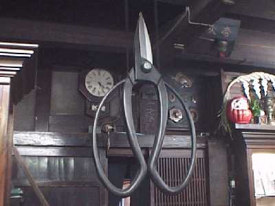 | ガラス戸の中には,スパッと切れそうなナイフ | 150センチは有ろうか巨大なハサミ |